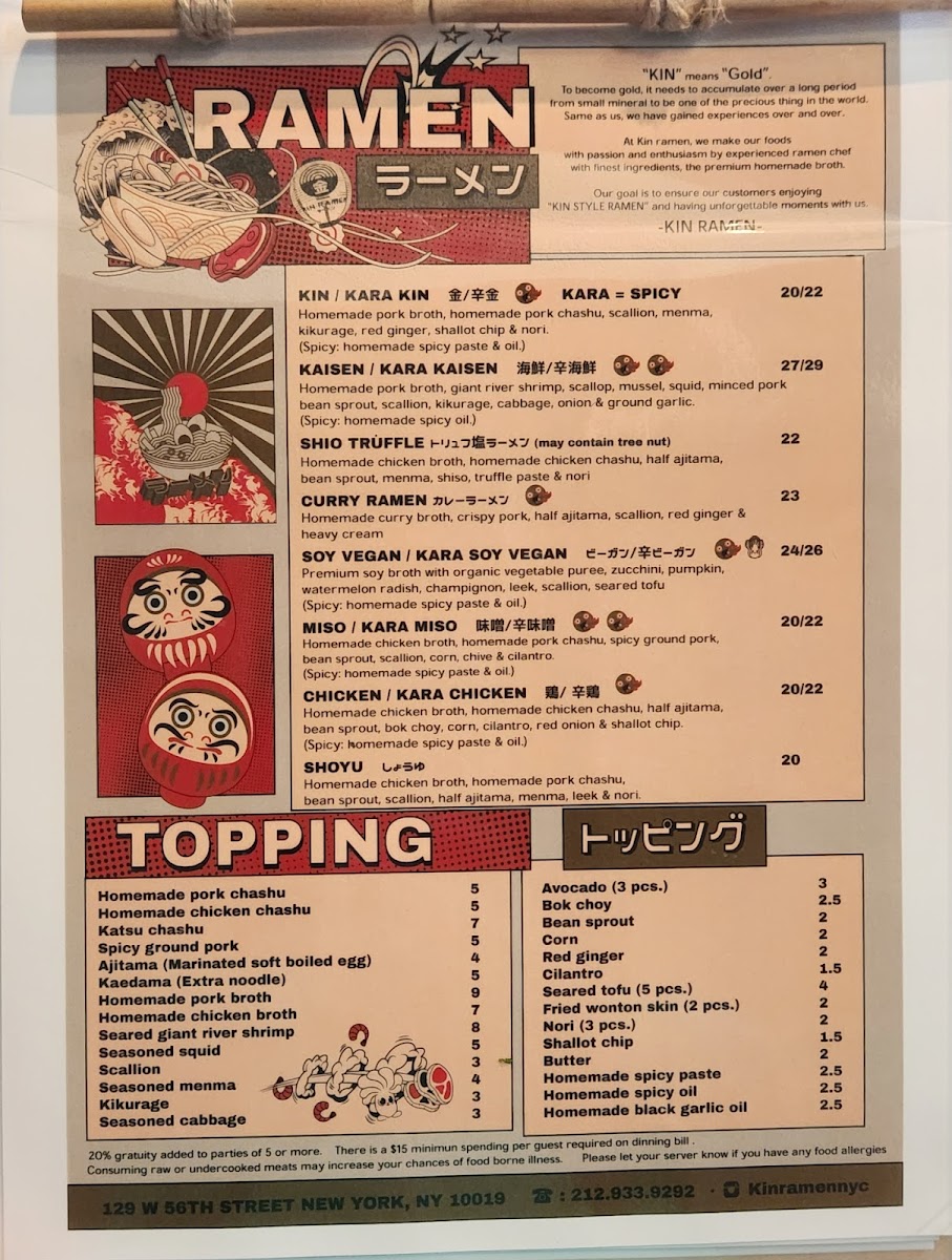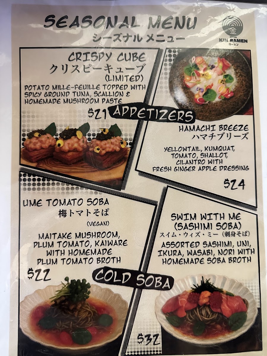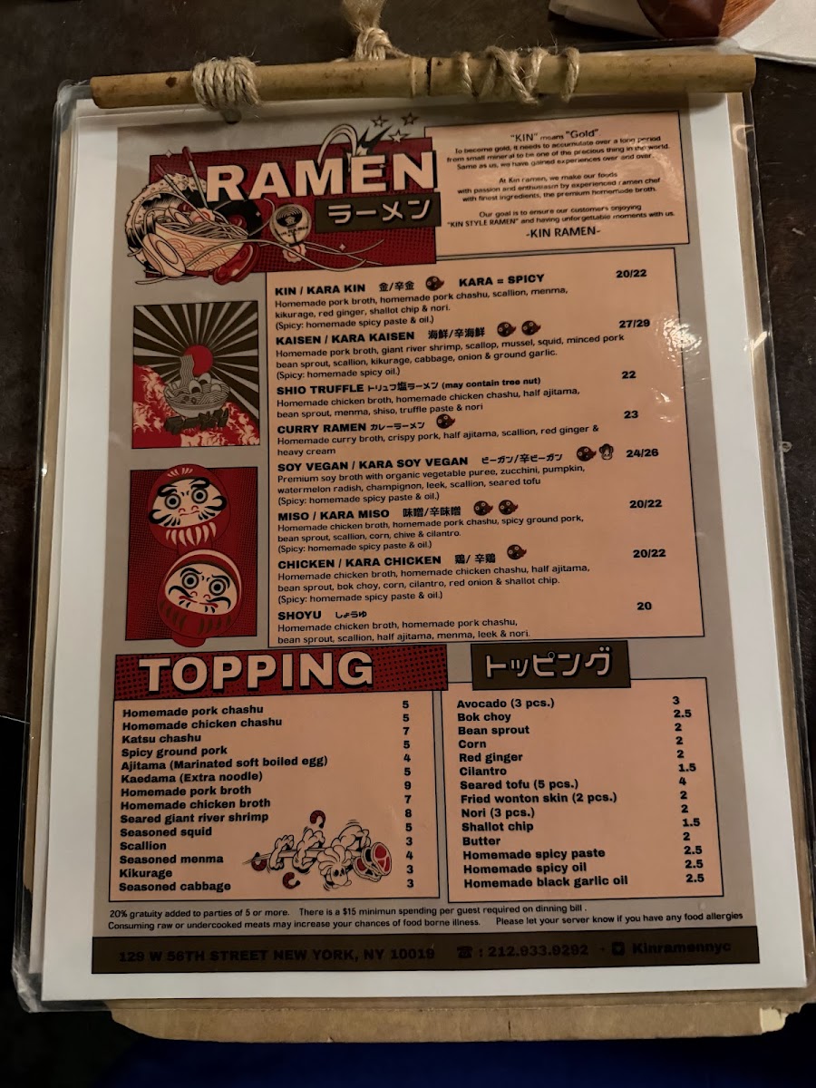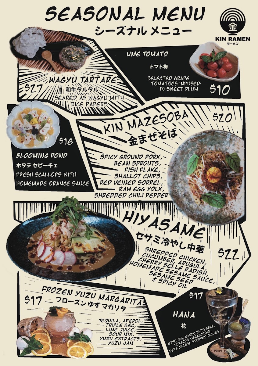 Kin ramen Menu