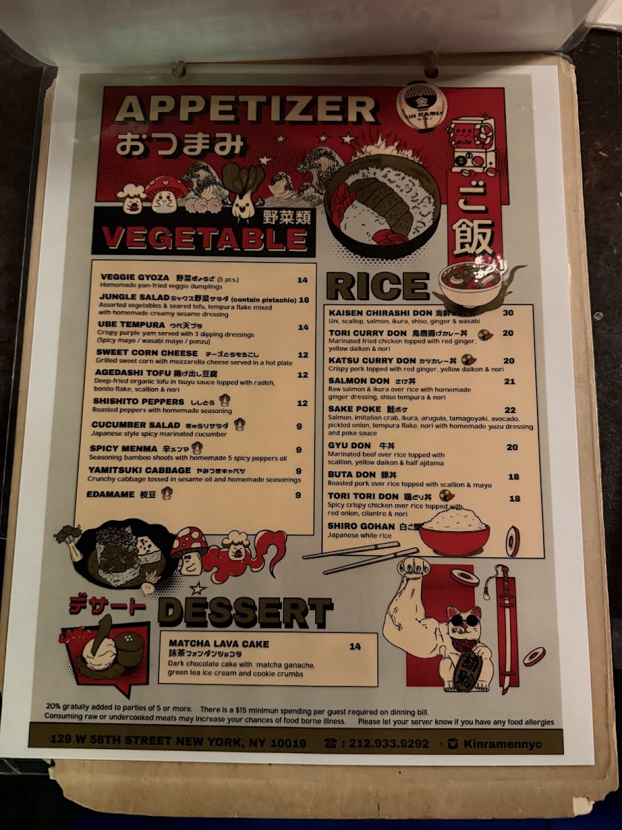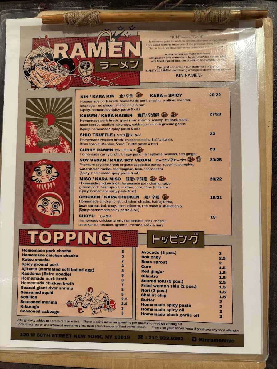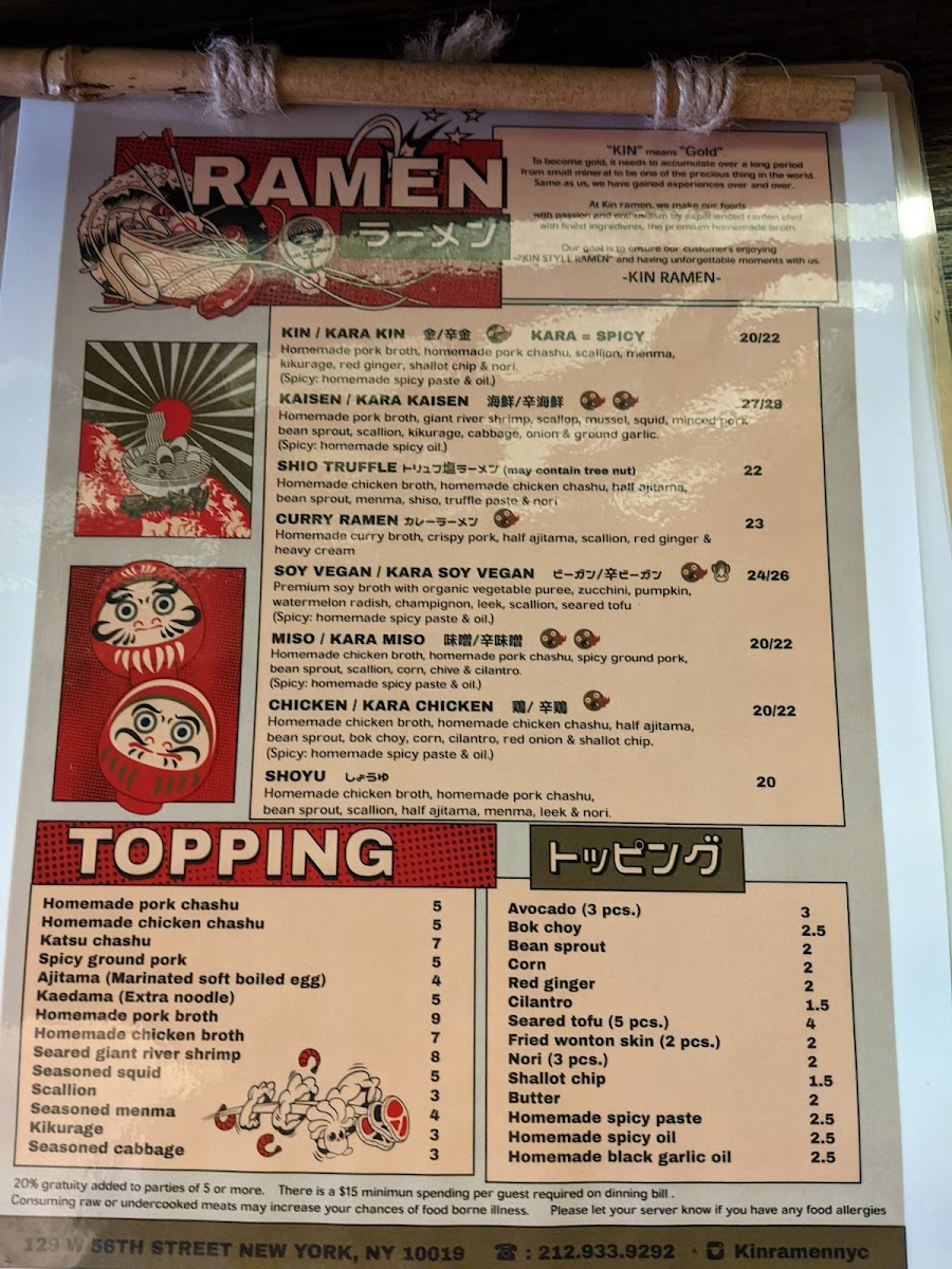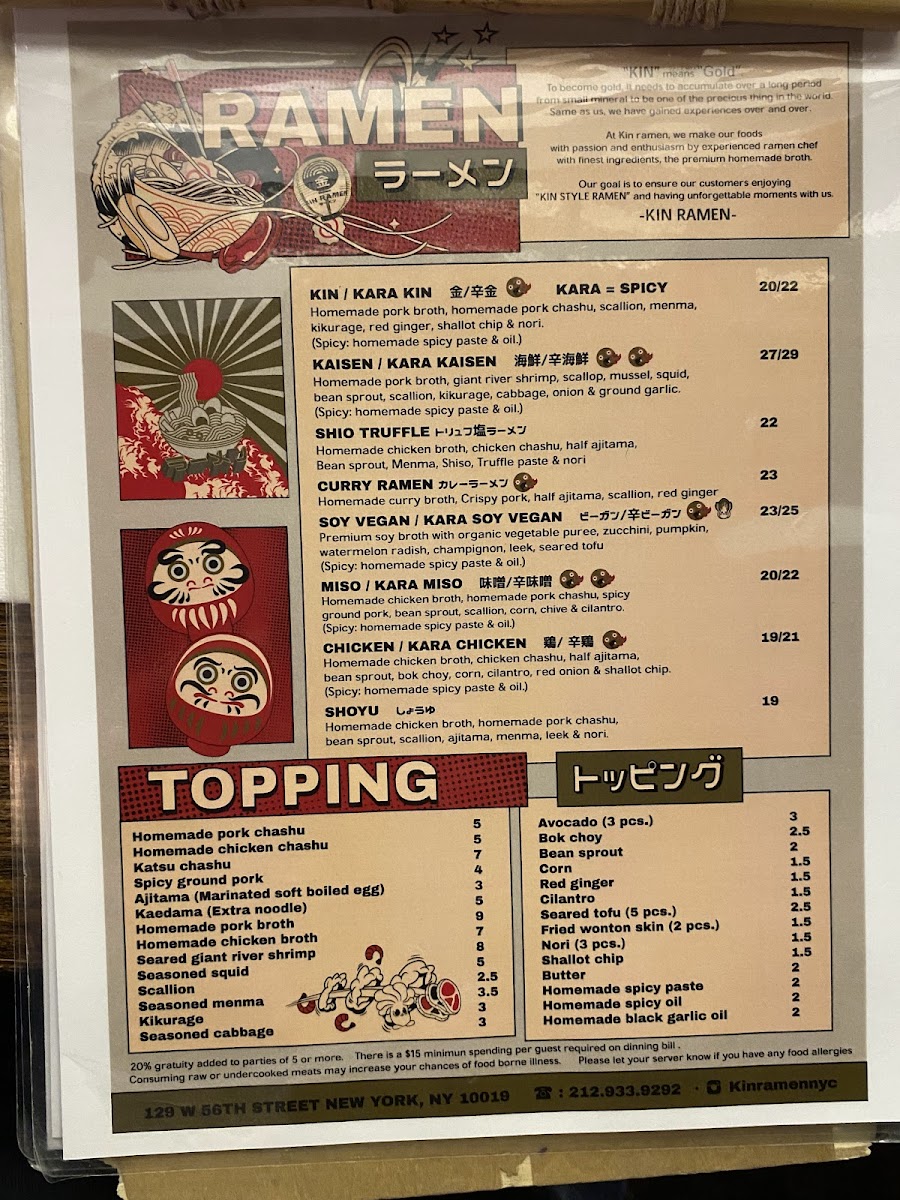 Kin ramen Menu